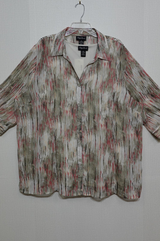 Maggie Barnes, New 3/4 Sleeve Button Down Shirt & Shell Set, Size 22/24W